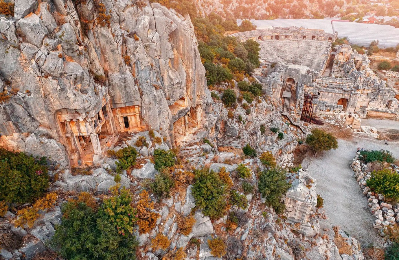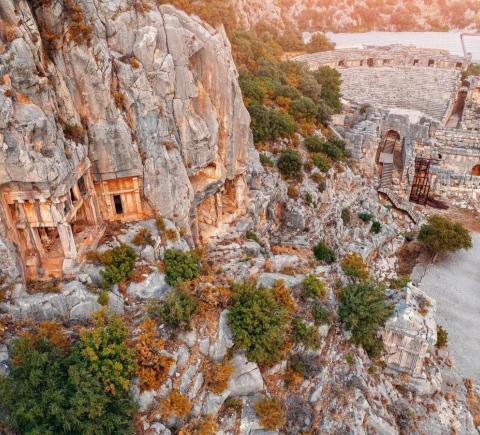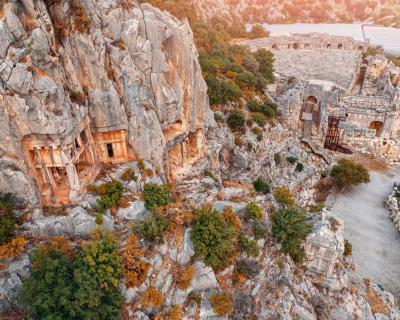 Древний город Мира. Один из важнейших в Ликийской цивилизации. Здесь находятся знаменитые скальные гробницы 4 века до н. э., напоминающие фасады античных храмов.