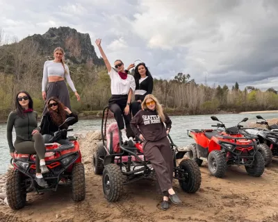 Сафари на квадроциклах. Маршрут проходит вдоль реки Кёпрючай по пересечённой местности с пыльными дорогами, грязевыми участками и водными преградами.