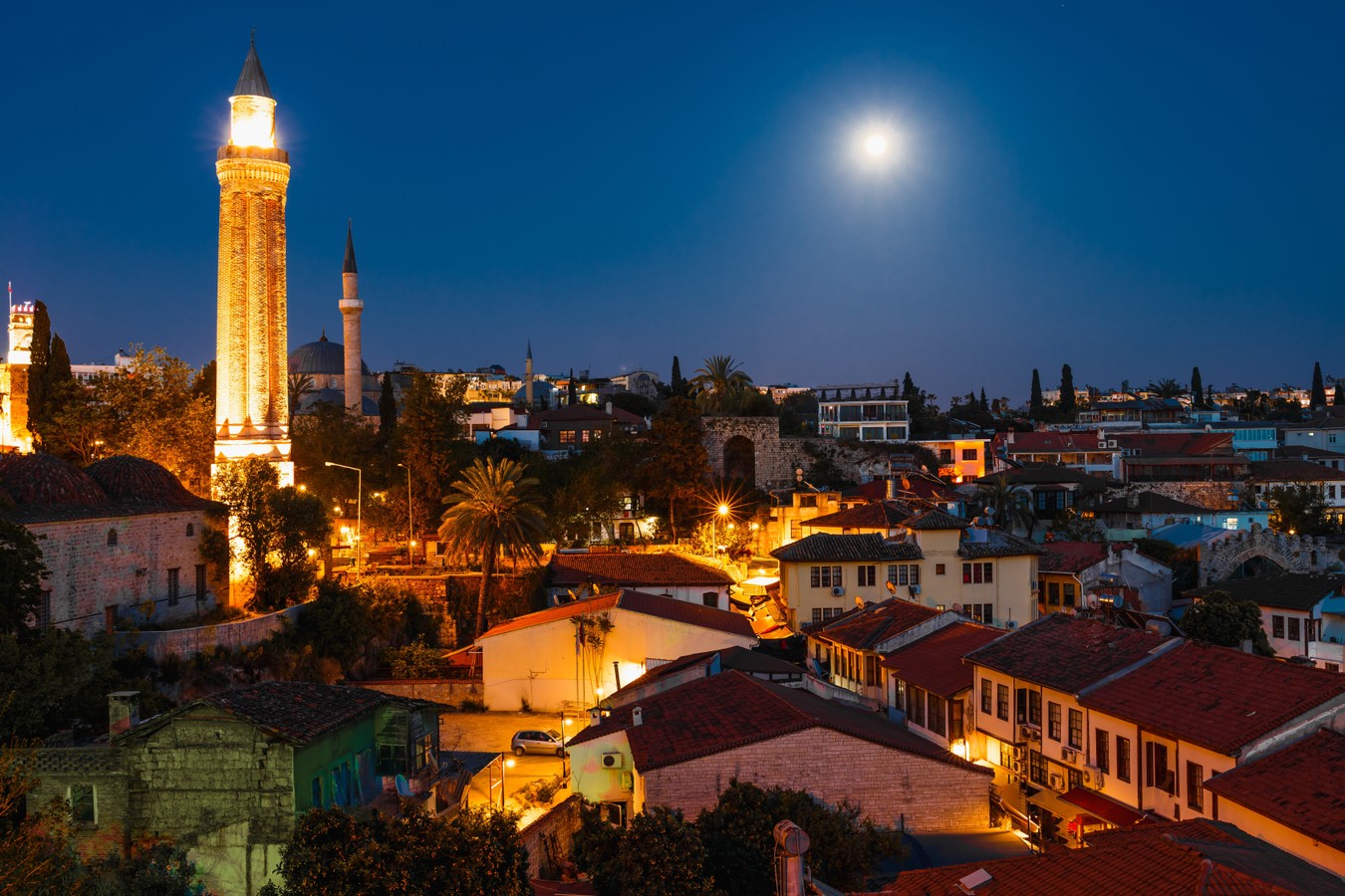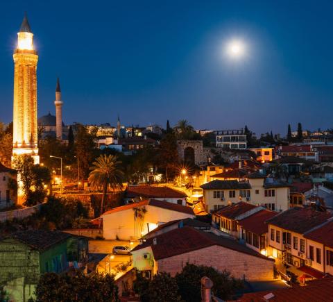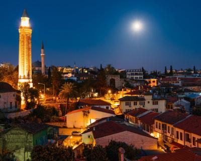 В светлое время суток столбик термометра в Анталье поднимается до высоченных отметок — самое время отдыхать у моря. Но когда солнце скрывается за горизонтом, город оживает. В ночных огнях — своё очарование. Я приглашаю вас на прогулку по улочкам Старого города после заката. Даже если вы видели мечеть Искеле или башню Хыдырлык, ночью они откроются вам с неожиданной стороны.