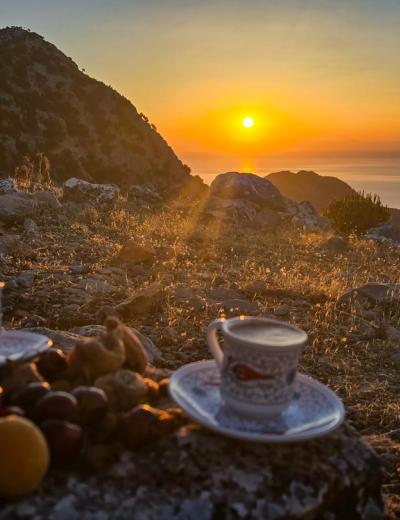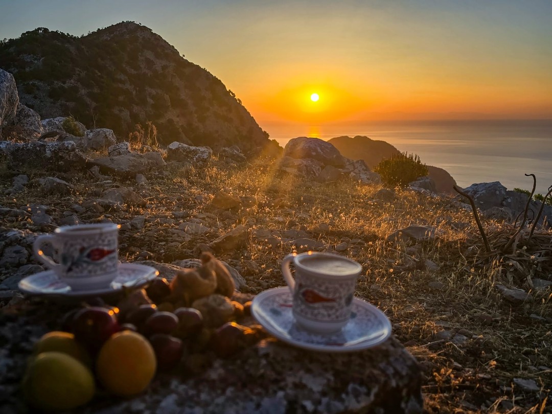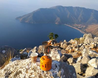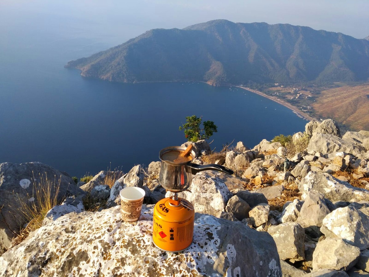 Утренний кофе, который вы не забудете. Оказавшись на вершине, вознаградим себя. Сварим ароматный турецкий кофе на горелке, встретим восход с потрясающим видом, помолчим, подумаем о вечном… А внизу — только зеркало моря, безмятежность и умиротворение. Новый день начался!