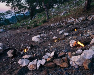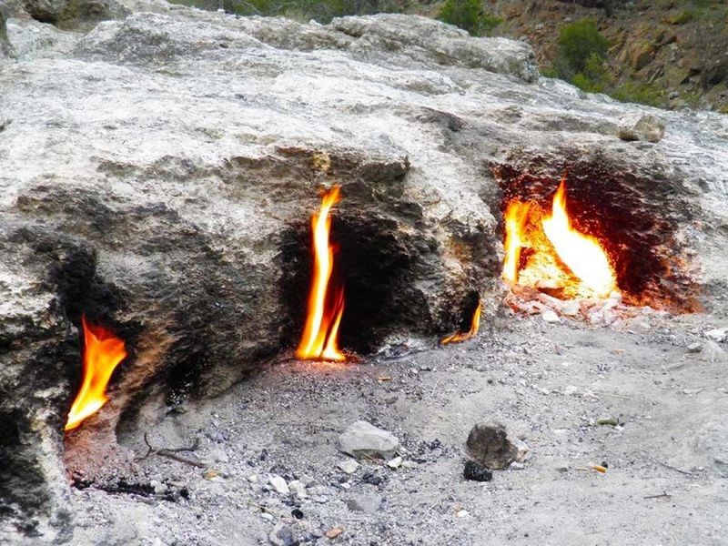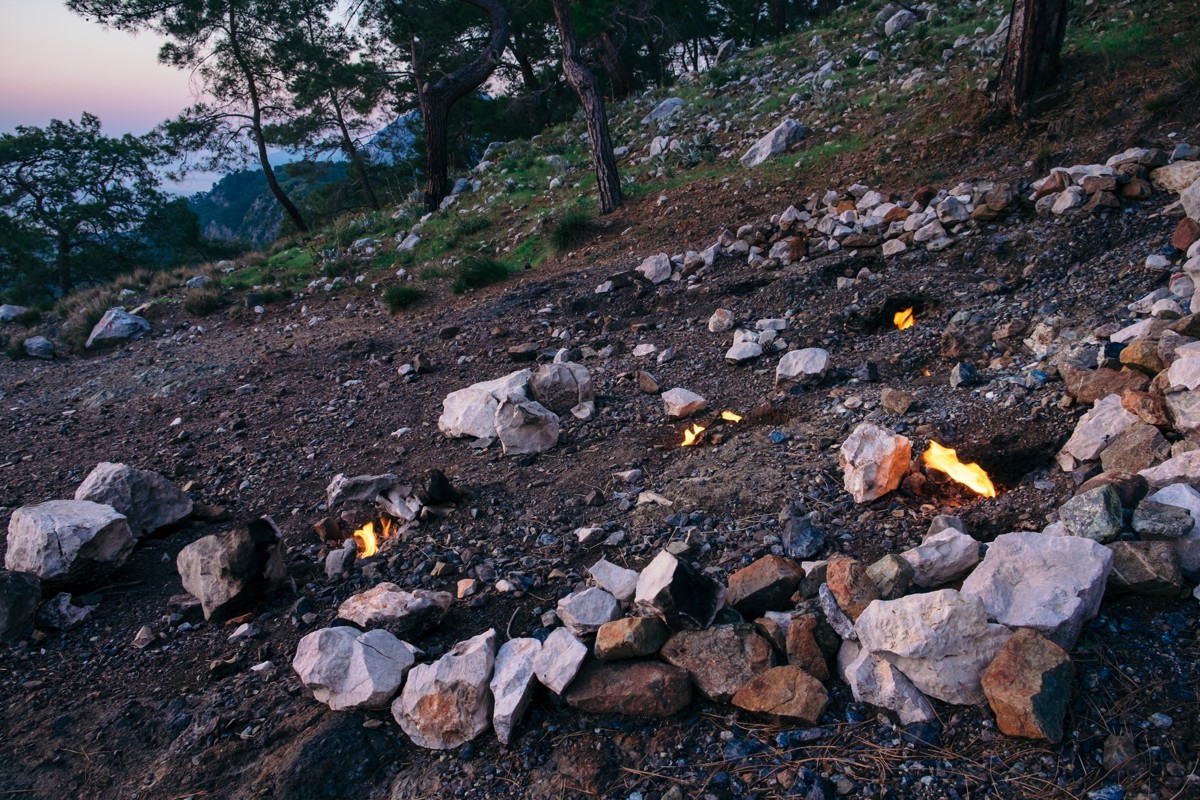 Ну и квинтэссенция нашего путешествия — мистическая гора Янарташ. Это одно из редких мест в мире, где на протяжении веков из под земли вырываются языки пламени. Древние люди не знали причину этого явления, поэтому приписывали кострам мифические свойства. Считалось, что именно здесь обитает злобная Химера. Проверим?