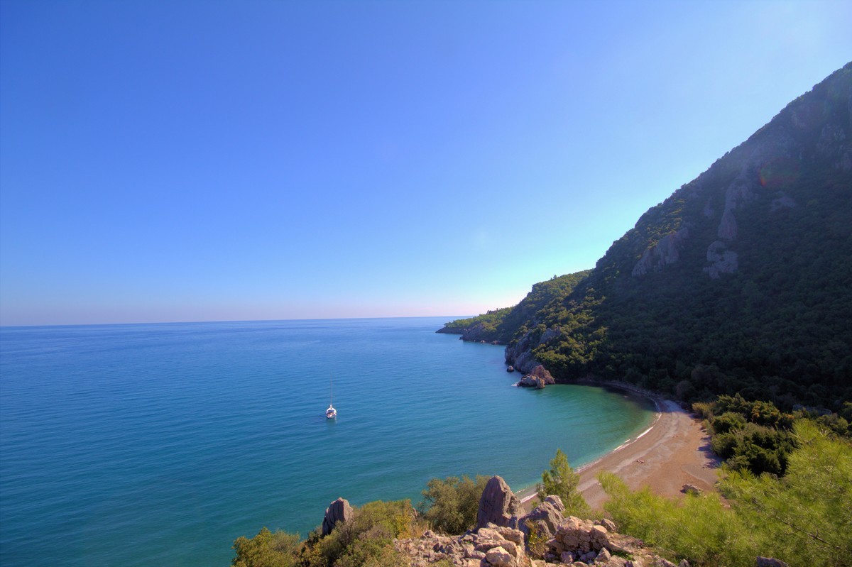 Мы выезжаем из города и отправляемся к первой остановке на нашем маршруте: городу Олимпос. Говорят, что поселение основали морские разбойники — их привлекали укромные бухты, разбросанные вдоль берега моря. Кроме того, само побережье окружено неприступными скалами с множеством пещер — есть, где укрыться.