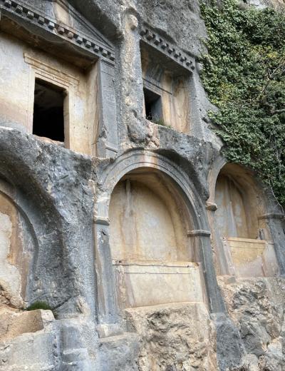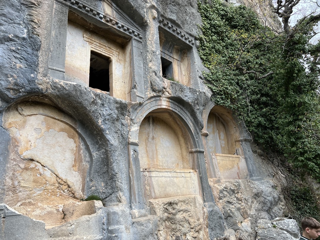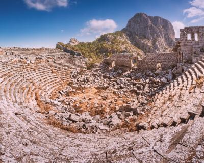 Вы увидите сохранившиеся с античных времен улицы с колоннами, термы, гимназии, торговую площадь, цистерны для воды, ликийские гробницы в скалах и огромный амфитеатр на самой вершине горы. Я расскажу, что долгое время обеспечивало безопасность города, как ему удавалось чеканить собственную монету, какие ремесла здесь были развиты и какими методами пользовались жители для получения и хранения воды.